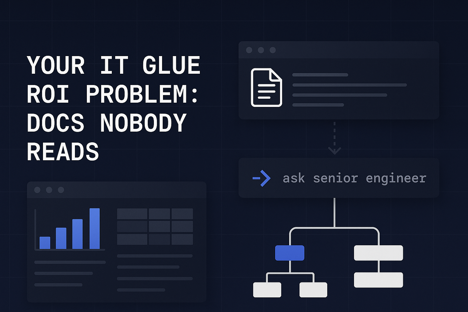 You're paying $29-45 per user per month for IT Glue. Your documentation is thorough. But your technicians still Slack the senior engineer instead of searching. Here's why, and what to do about it.